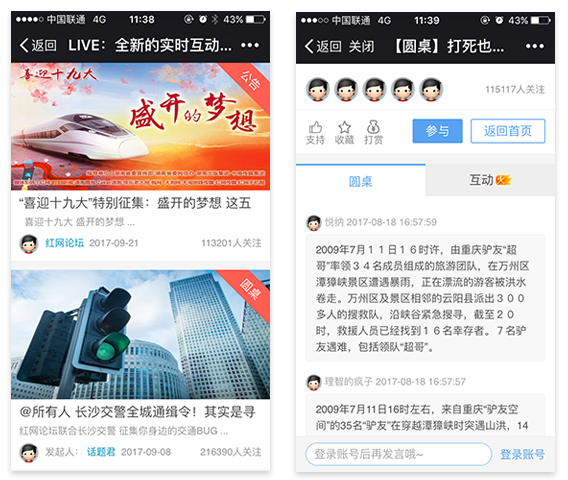 本直播系统为图文直播+网友互动系统,红网有一个时刻新闻app,网页版也包含图文直播系统,但之前的系统不包含网友互动功能,仅活动发起者单个的在那发布信息,这样互动度不够。因此,在红网论坛添加一个图片直播系统、并且带用户互动功能。